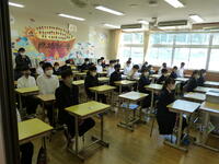 本日が授業最終日でした。各教科の授業の様子をお届けします。1年生の数学科では来年度の県数テストに向けた問題演習、1年生の国語科では1年間を授業を振り返って教科担任からお話がありました。2年生の数学科では復習をkahoot!というサイトを用いて行い、楽しそうに活動していました。2年生の国語科では入試実践力を早い段階から身に付けるために問題演習を行いました。2年生の音楽科ではイントロかるたという活動をし、最後の音楽の授業を楽しんでいました。