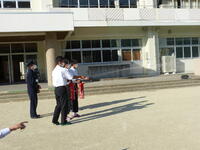 本日は火災を想定した避難訓練が実施されました。火災発生からの素早い避難を真剣に取り組むことができていました。講師の先生から、実際の火災の時には自分の予想していないことが起きる時があるので、まずは自分自身の命を守ることを最優先に行動するようにと話がありました。代表生徒6名と教職員3名が消火訓練を行い、「火災だー」と叫び、的を狙って放水をしました。