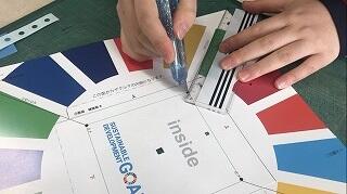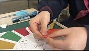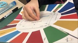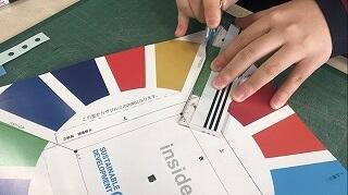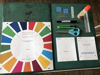 | 〇配布するもの ・厚紙2種類(大・小) ・ストロー ・補強シール(色付き)2つ ・補強シール(透明)5つ 〇各自準備するもの ・カッター ・定規 ・油性マジック ・のり ・カッター板(新聞紙も可) |