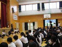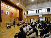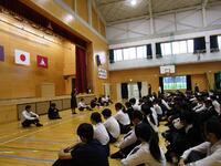 その後、体育館では、生徒会執行部によるプレゼンテーションを交えた学校紹介を行いました。