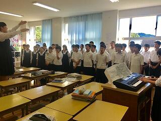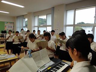 3-1 音楽室にて昼休みに桑引先生から合唱指導