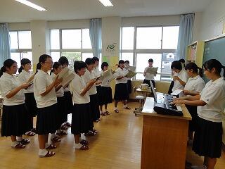 練習初めに、いつも音楽の授業で歌う歌詞を少し変えて