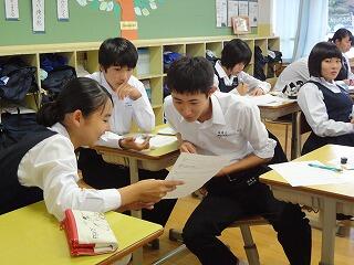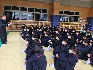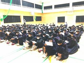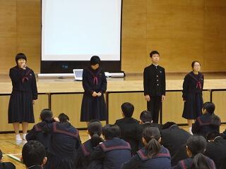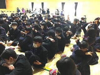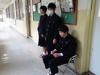 岡富中学校の3年生として、1,2年生にお手本になる素晴らしい行動だと思います。