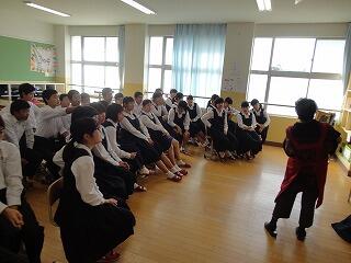 その後、ボディーパーカッションの発表です。体育の授業でやったものをさらに発展させました。夏休み前から練習をはじめ、昼休みや放課後を使って練習をしてきました。