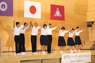 その後、ボディーパーカッションの発表です。体育の授業でやったものをさらに発展させました。夏休み前から練習をはじめ、昼休みや放課後を使って練習をしてきました。