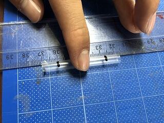 | 1.ストローの端から中にはさみを入れる。 2.しるしまで切りこみを入れる。 3.対角になるように4か所切る。(上下左右) |