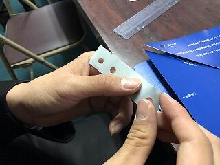 | ○配布するもの ・厚紙2種類(大・小) ・ストロー ・補強シール(青)3つ ・補強シール(透明)5つ ○各自準備するもの ・カッター ・定規 ・油性マジック ・のり ・カッター板(新聞紙も可) |