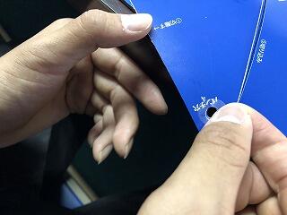 ⑪4か所のパンチ穴(真ん中以外)に補強シール(透明)を貼る