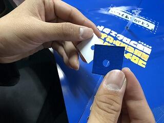| ・向きを注意すること ・Bという部分に合わせて貼る ・上下を書いてある通りに合わせる ・のりは4隅を特にていねいに |