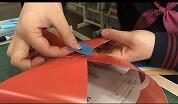 | ・向きを注意すること ・Aという部分に合わせて貼る ・上下を書いてある通りに合わせる ・のりは4隅は特にていねいに |