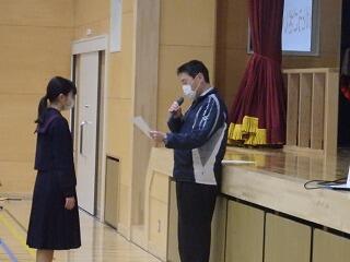 このあとに、1・2年生の代表と生徒会の生徒が、1年間の反省と来年度への抱負を述べてくれました。