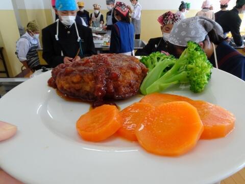 調理実習2回目「ハンバーグと付け合わせの野菜」