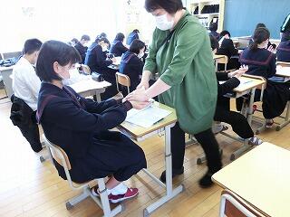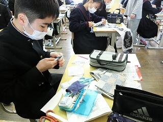 コロナウイルス感染対策として、2年生の家庭科ではマスクづくりを行っています。