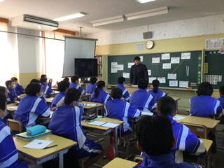 ▲2時間目は、夢について語り合う時間です。▲先生からは、夢を叶えられる人は、努力だけでなく、夢を諦めないことが大切だと話されました。▲最後に信念を持って欲しいという話もありました。