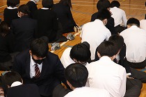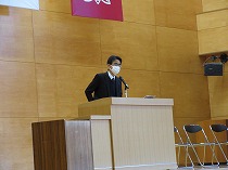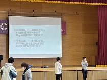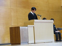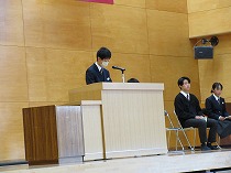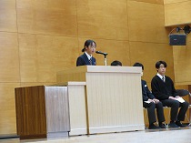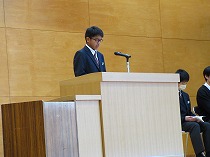 各表彰を最初に行い、終業式の最初に、各学年及び生徒会代表の4名の生徒から2学期の反省について発表してもらいました。その後、校長先生から話しをしていただきました。
