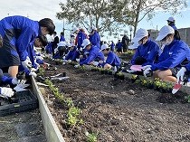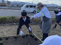 12月5日(木)の午後に、コノハナロード入口広場の花植えボランティアを1年生が行いました。