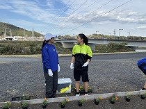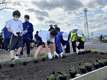 コノハナロード延岡市民応援隊の皆様のご指導のもと、本校1年生と北川中学校の1年生約140名で、およそ1200株の花を植えることができました。