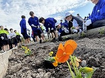 とても風が強く寒い日でしたが、皆さん楽しく、そして一生懸命花植え活動に取り組むことができました。