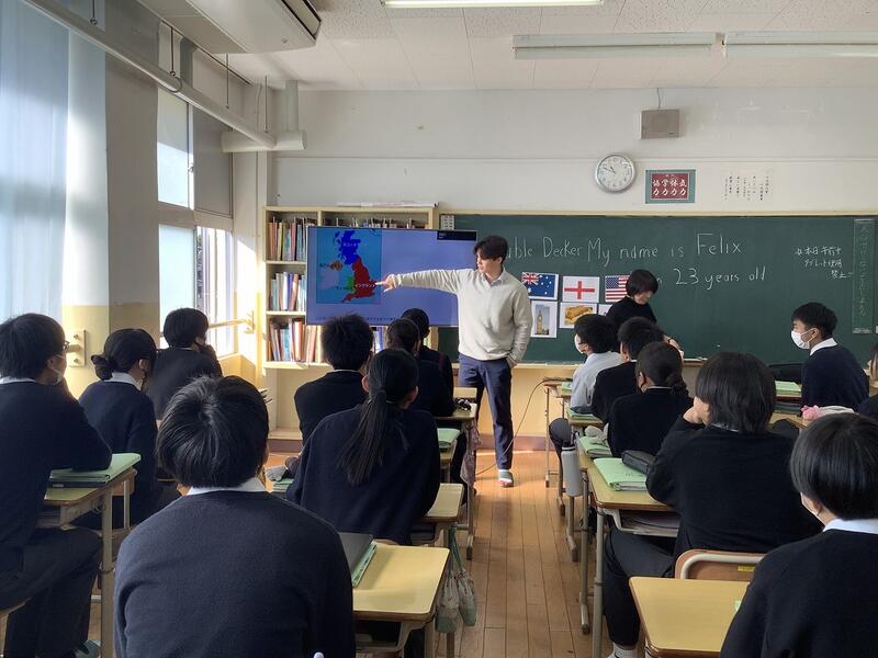 皆さん、こんにちは。私の名前はフェリックスです。幸運にも岡富中学校の新しい ALT に就任しました。私はイギリスで育ちましたが、半分は日本人でもあります。私は皆さんを通して日本についてもっと学びたいと思っています。また、皆さんにも私からイギリスの興味深いことを学んでもらいたいと思っています。これまでのところ、みなさんや先生方と知り合うことができて本当に楽しいです。みんなとてもフレンドリーで親切です!皆で力を合わせて頑張って、これからたくさんの素晴らしい経験を積んでいきたいと思います。
