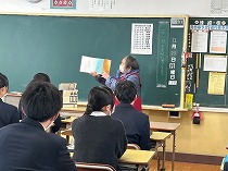 12月23日(月)の朝、「地域と連携しながら、子ども達の読書意欲を喚起する。」ことを目的に、図書ボランティア『くす楠』の皆様の御協力をいただき、「読み語り」を実施しました。