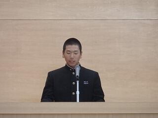 体育大会のリーダーをして、人をまとめる難しさを学んだこと、3学期からは部活動でのメリハリをつけて練習を頑張っていきたいこと。また、時間を守り、心を落ち着かせて勉強に臨めるよう、3学期では頑張りたい、と決意表明をしてくれました。