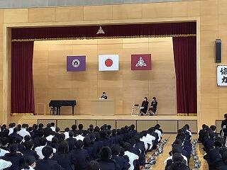 本日、体育館に全校生徒が集まり、令和4年度の修了式を行いました。