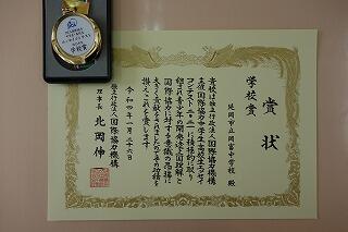 昼休みには、校長室で2つの表彰状授与式を行いました。