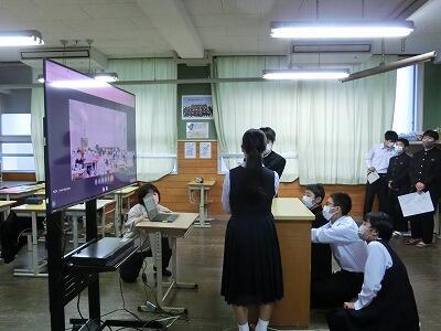 本来であれば、体育館で全校生徒を集めて実施される予定でしたが、新型コロナ感染拡大防止のため、代表生徒のみが出席し、校長室で、リモート形式での式となりました。