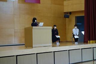 【 ↓ 生徒代表あいさつを、三谷さんが行いました】