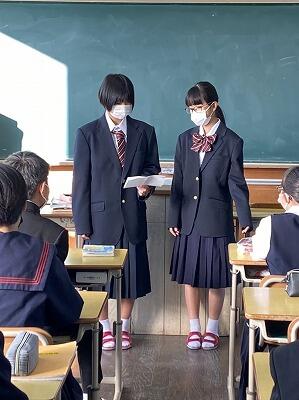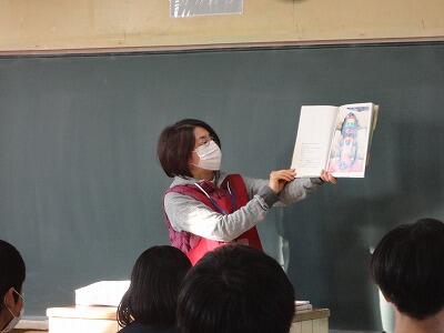 今日も3年生の読み語り(ボランティア くす楠)がありました。3年生は毎日受験モードで頑張っていますが、朝の読み語りの時間は、さまざまな世界に自分たちをつれっていってくれるようなそんな大切な時間になっています。いつもそんな時間を提供していただく「くす楠」のみなさん、ありがとうございます。