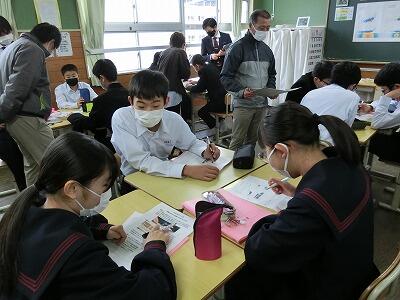 本校の指導教諭が市内の中学校の先生方に授業を公開しました。教科は社会科。単元名は、自由民権と西南戦争 ~西郷隆盛という人物を通して~ 「西郷隆盛は、なぜ西南戦争を起こしたのか?」でした。それぞれの生徒が、これまでに学んできたきた知識を整理しながら、自分の考えをまとめていました。