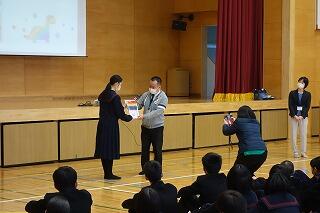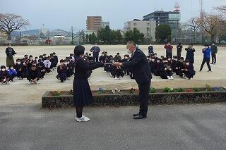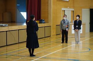 本日は、1年生が取り組んできた人権の花活動に対しての感謝状の贈呈式が