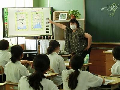 第1学年の総合的な学習の時間では、市教委の富山先生を講師としてお招きし、SDGsについて学習しました。