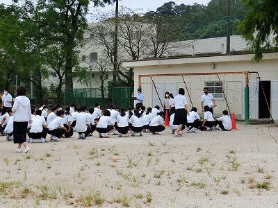 体育大会全体練習2日目です。各団共に、応援の練習を頑張っています。どの団が応援賞を取るのか楽しみです。