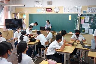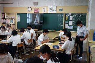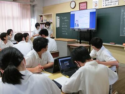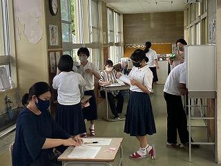 今年の生徒総会は、20日(水)、22日(金)の2日に渡って実施しました。全校で集まる形ではなく、各教室でクロームブックの「google meet」というアプリを使い実施しました。
