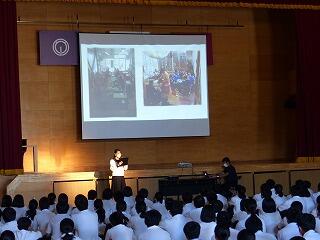 1年生の総合的な学習の時間で。講師に谷平興二様をお迎えして、