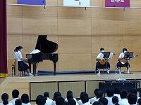 二つ目は、「感動してもらえるような演奏をする」ことです。私は、音楽部に所属し、今は楠の葉祭での演奏に向けて練習をしています。夏休みもたくさんの曲を一生懸命練習してきました。演奏する曲は、リズムが細かくて、リピート部分があるなど、難しい曲です。苦手部分を克服していきたいです。