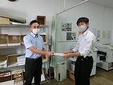 2週間に渡って「岡中ミニ美術館」を延岡信用金庫本店で開催しました。本日、そのお礼として、中学校3年生に「合格えんぴつ」のプレゼントがありました。延岡信用金庫の店長さんからは、作品展示について「作品を通じてお客さん方と話がはずんだ。」「店内が明るくなった。」「地元の生徒の作品でお客さんもしっかり鑑賞されていた。」などの感想が語られました。受験えんぴつは、3年生の各学級委員長が受け取りました。3年生からは、「受験がんばります。」とお礼が述べられていました。