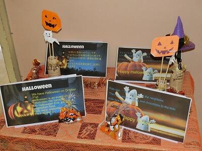 校内の廊下では、英語の授業で作成したハロウィンの設営が目を引きます。