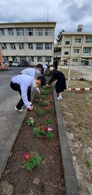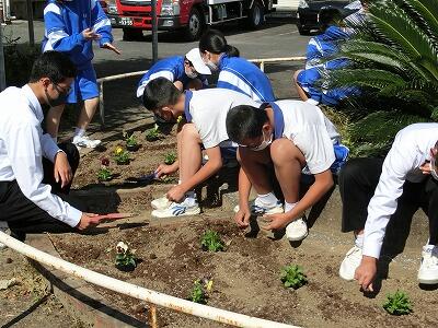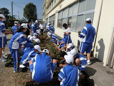 本校は、本年度「人権の花」活動を実施しています。日常的な花の手入れについては、ボランティアを募って活動していますが、本日も多くの生徒が活動に参加していました。