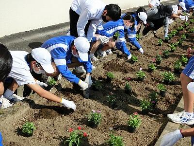 天気にも恵まれ、人権の花の活動を行いました。1年生が協力しながら「ノースポール」「パンジー」「なでしこ」「ビオラ」を植えました。校内を鮮やかに彩ってくれそうです。学校に来られた方は、この花々をお楽しみください。
