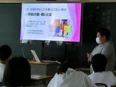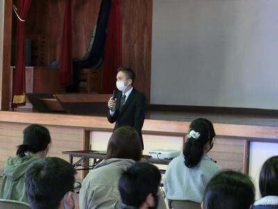 今日の総合的な学習の時間のテーマは「企業を変革し、延岡で起業する人の想いを聞く」ということで3名の講師を招き講義していただきました。講師は、デザイン事業や地域プチプランニングの甲斐さん、婚活応援活動を起業した佐々木さん、アトツギ甲子園宮崎県代表の松田さんです。それぞれの熱い想いに生徒も圧倒されていました。