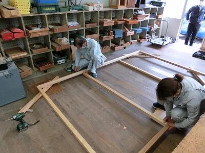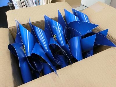 今年の体育大会は、3団編成(赤・白・青)になります。これまでは2団編成(赤・白)だったため青団用の団装飾のパネルを学校技術員の方に準備していただきました。