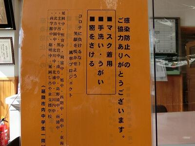 会場には、下の写真のような市内中学生一同からの「感染対策のお願いが」掲示されますのでよろしくお願いいたします。