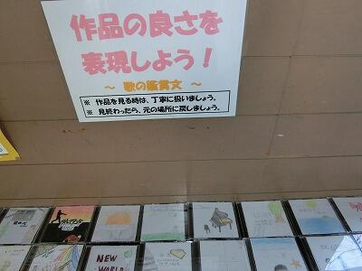 1年生の廊下には生徒の描いたCDジャケットが展示してあります。国語の時間に作成したもので、ケースの中にはCDではなく「鑑賞文」が入っています。どの作品も曲をイメージできる作品に仕上がっています。