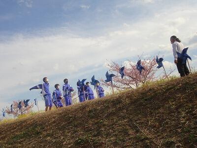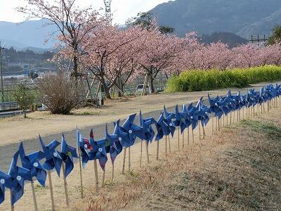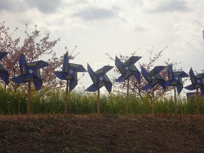 各学校のご協力で目標本数を大きく上回る1500本の風車が完成し、コノハナロードに設置が終了しました。ありがとうございました。