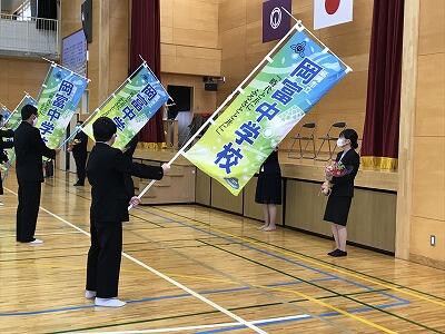 今回は、放送の紹介にあわせて、各部員も教室で起立し、代表生徒と同じ気持ちで式に臨み、放送室まで、激励の大きな拍手が聞こえてきました!