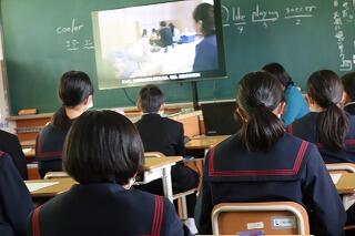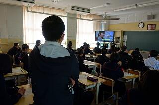 【 ↓ 中学校の生徒会役員が作成した学校紹介ビデオを上映 】