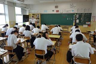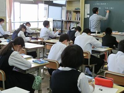 連休後2日目になります。各学級とも真剣な授業の様子が見られます。特に3年生は、実力テスト2日目に取り組んでいます。中学校卒業後の進路について少しずつ考えていきましょう。