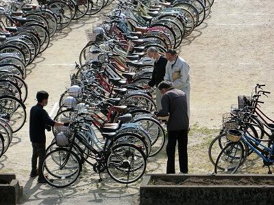 部活動などで自転車を安全に利用できるように、自転車組合に依頼して、全校生徒対象の自転車点検を実施しました。